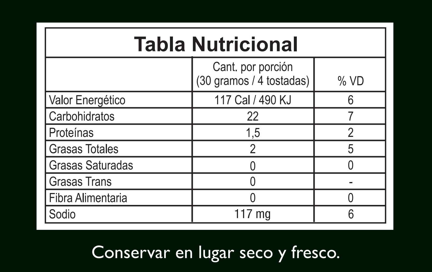 Almidón de maíz, harina de arroz, fécula de papa, harina de arveja, harina de trigo sarraceno, aceite alto oleico, azúcar, levadura, almidón de maíz pregelatinizado, sal, EST INS 464, 415, ANT: 321.